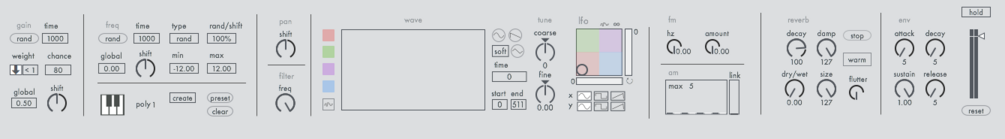 *wave is a polyphonic synthesizer built in Max for Live. The generation of sound is based on wavetable synthesis and waveshaping.